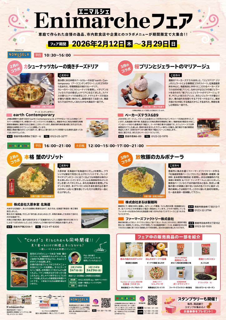 当社の拠点である北海道恵庭市、JR恵庭駅直結のエニマルシェで開催されるエニマルシェフェアに出店が決まりました!